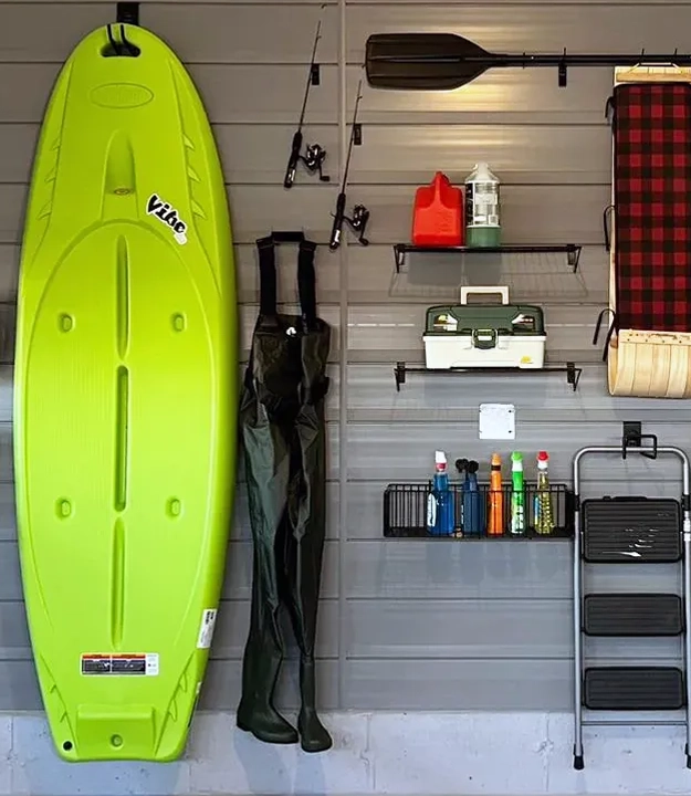 A well-designed garage storage system keeps tools, equipment, and everyday items organized while freeing up valuable floor space. Slatwall panels allow you to hang hooks, baskets, and shelves so everything stays visible and easy to reach.